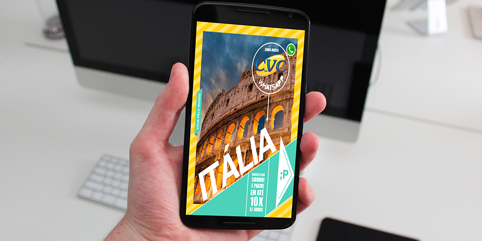 Produto de linha direta com o cliente, oferecido para a CVC. Atingindo o público em todos os tipos de plataformas e redes sociais.
